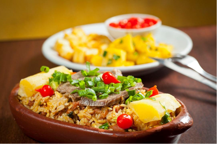 Baião de dois is a dish of Ceará origin, typical of the Northeast region and parts of the North region of Brazil. It consists of rice and beans, preferably green beans or new beans. Rennet cheese is often added. No dry meat is added in Ceará.